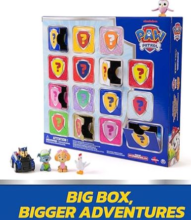 - Sorpresas emocionantes en el interior: cuenta con una gran caja de 12 pulgadas con 15 puertas para abrir, revelando juguetes misteriosos de la Patrulla Canina que son perfectos para ampliar cualquier colección de juguetes de aprendizaje