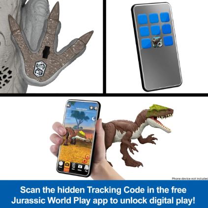- ¡Escanea y recoge! Escanea el código en el pie del dinosaurio en la aplicación gratuita Jurassic World Play con un dispositivo inteligente compatible (no incluido) para actividades de RA y crear una colección digital de dinosaurios.