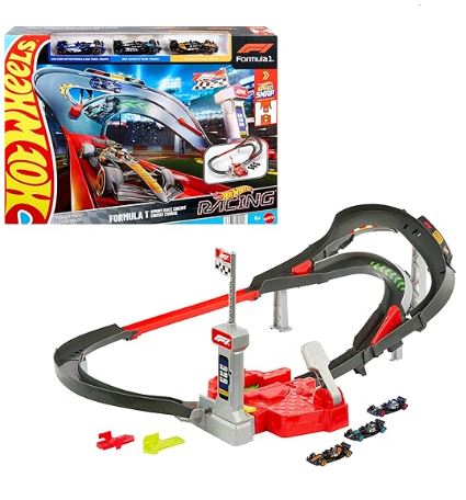• Aprovecha el emocionante mundo de las carreras de Hot Wheels y Fórmula 1 con el set de circuito de carreras Hot Wheels Racing Formula 1 Sprint Race