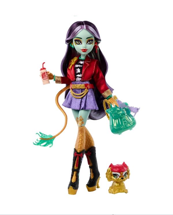 - La muñeca Jinafire Long de Monster High es un dragón dulce, elegante y tormentoso con poderes climáticos Viene con una mascota espeluznante y linda y muchos accesorios divertidos.