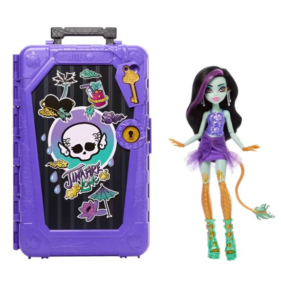 Monster High Skulltimate Secrets Muñeca Jinafire Long y Set de Accesorios, Destino: Gore-geous Oasis con maleta y más de 19 sorpresas como ropa