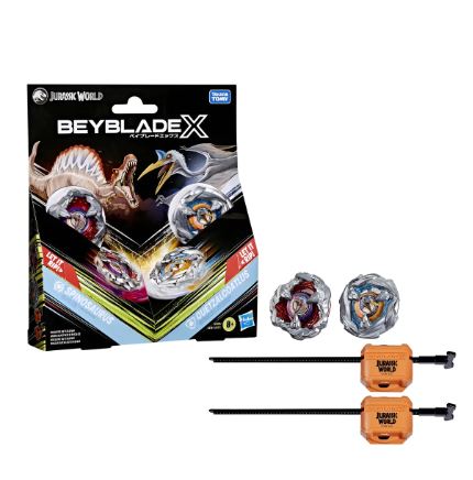 Beyblade X Jurassic World Collab Spinosaurus vs. Quetzalcoatlus – Juego multipaquete, 2 camisetas Takara Tomy, 2 lanzadores, juego de batalla, juguetes de dinosaurio, a partir de 8 años