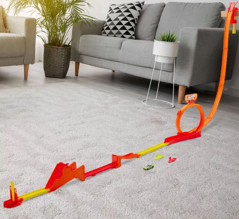 • Pista Dinámica: Diseña una pista para carreras y acrobacias con Hot Wheels con el set de pista Hot Ones Gravity Drop.