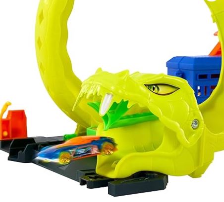 - Enfréntate a un némesis serpiente deslizante en el set de juego Hot Wheels Snake Spiral Attack que cuenta con múltiples formas de jugar