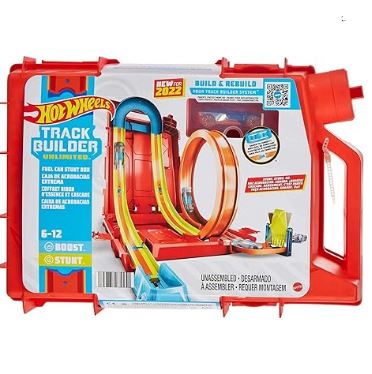- La caja de acrobacias Hot Wheels Track Builder Unlimited Fuel Can Stunt Box está llena de todos los ingredientes para crear un increíble circuito para carreras y acrobacias!