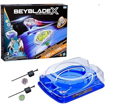 • BATALLA FUERA DE LA CAJA: El set de batalla Beyblade X Drop Attack incluye todo lo que los niños necesitan para jugar y competir: Beystadium, 2 trompos que giran hacia la derecha y 2 lanzadores de ripcord. ¡Ensambla el estadio y los tops, carga tu lanzador y 3-2-1 ¡Deja que explote!