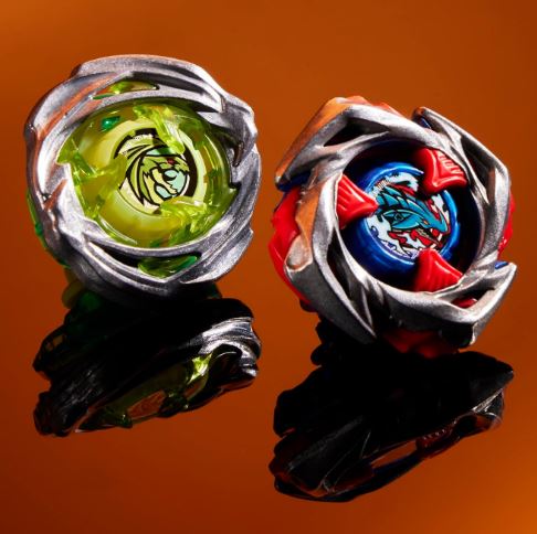 • PERSONALIZACIÓN DEL CONFLICTO: Incluye 2 tops de giro derecho diseñados por Takara Tomy con auténticas partes de metal fundido: el top tipo ataque Impact Drake 9-60LR y el top tipo defensa Hover Wyvern 3-85N